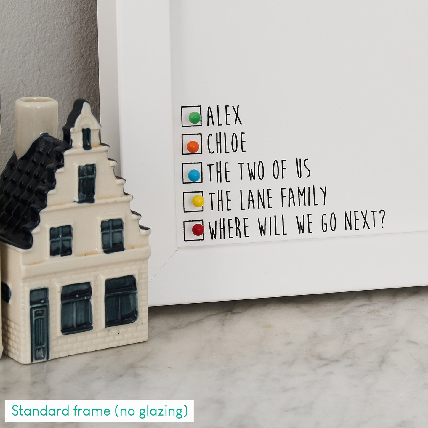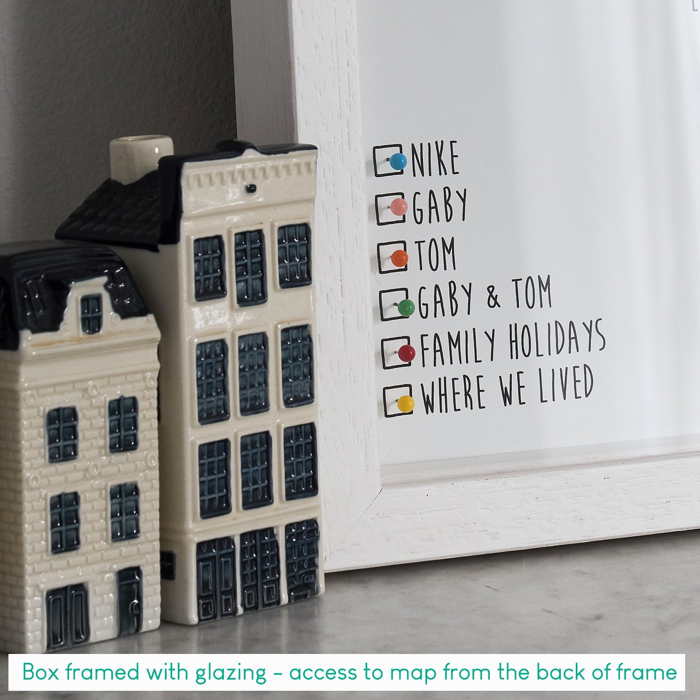 - Choose Your Own Categories – Select up to 6 custom pin categories to suit your story. Ideas include Family Holidays, Weekend Escapes, Romantic Getaways, Places We've Lived, or Bucket List Dreams.